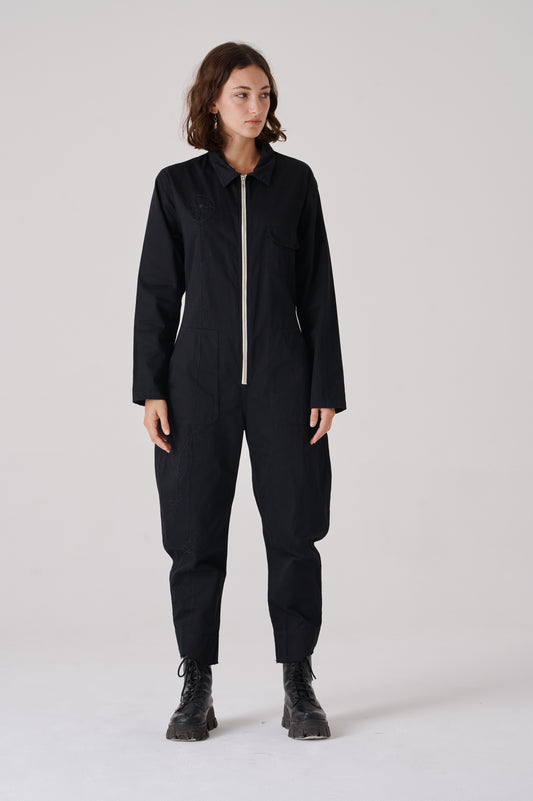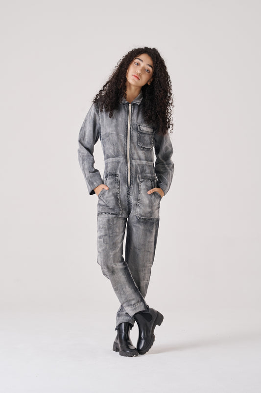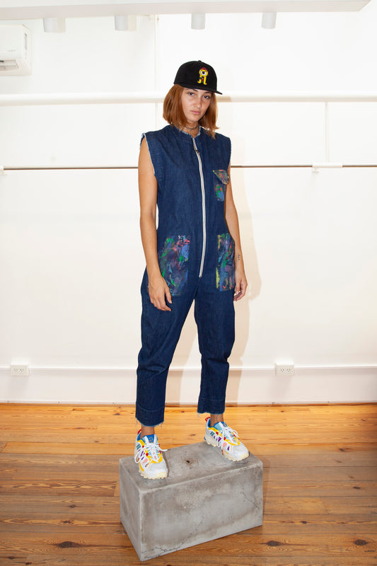 Overall made of Denim 98% cotton 2% spandex. It has a contrasting front zip fastening....