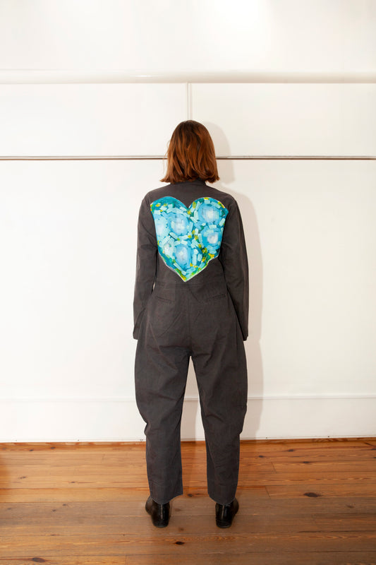 Overall made of italian linen (100%linen) and denim (98%cotton 2%spandex), with a variety patch of...
