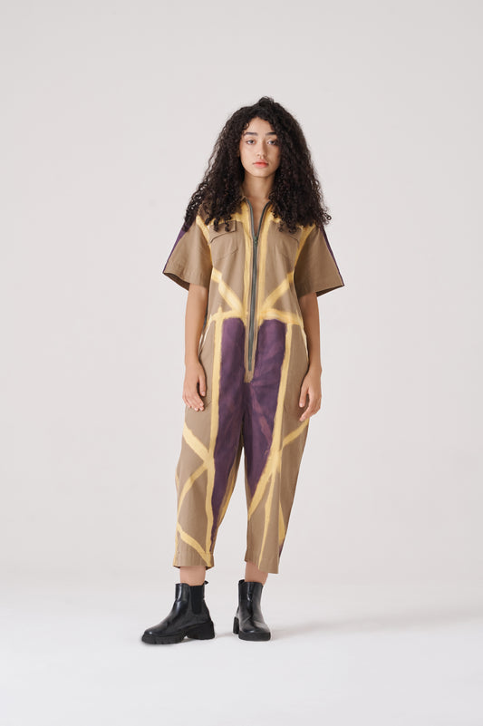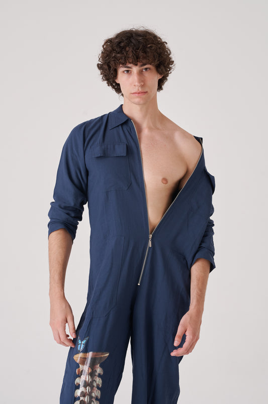 Overall made of drill fabric, 100% cotton. It has a contrasting front zip fastening, and...