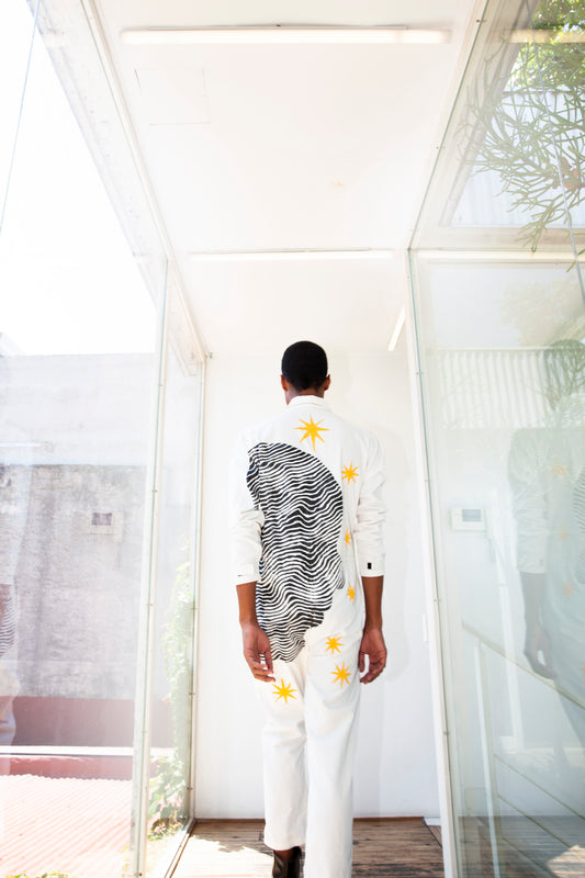 Overall made of wash canvas 100% cotton. It haves six zippers against tone, in the...