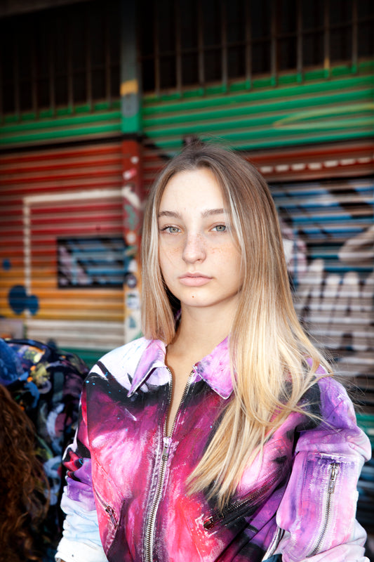 Overall made of denim 100% cotton. It has a contrasting front zip fastening .The sleeves...