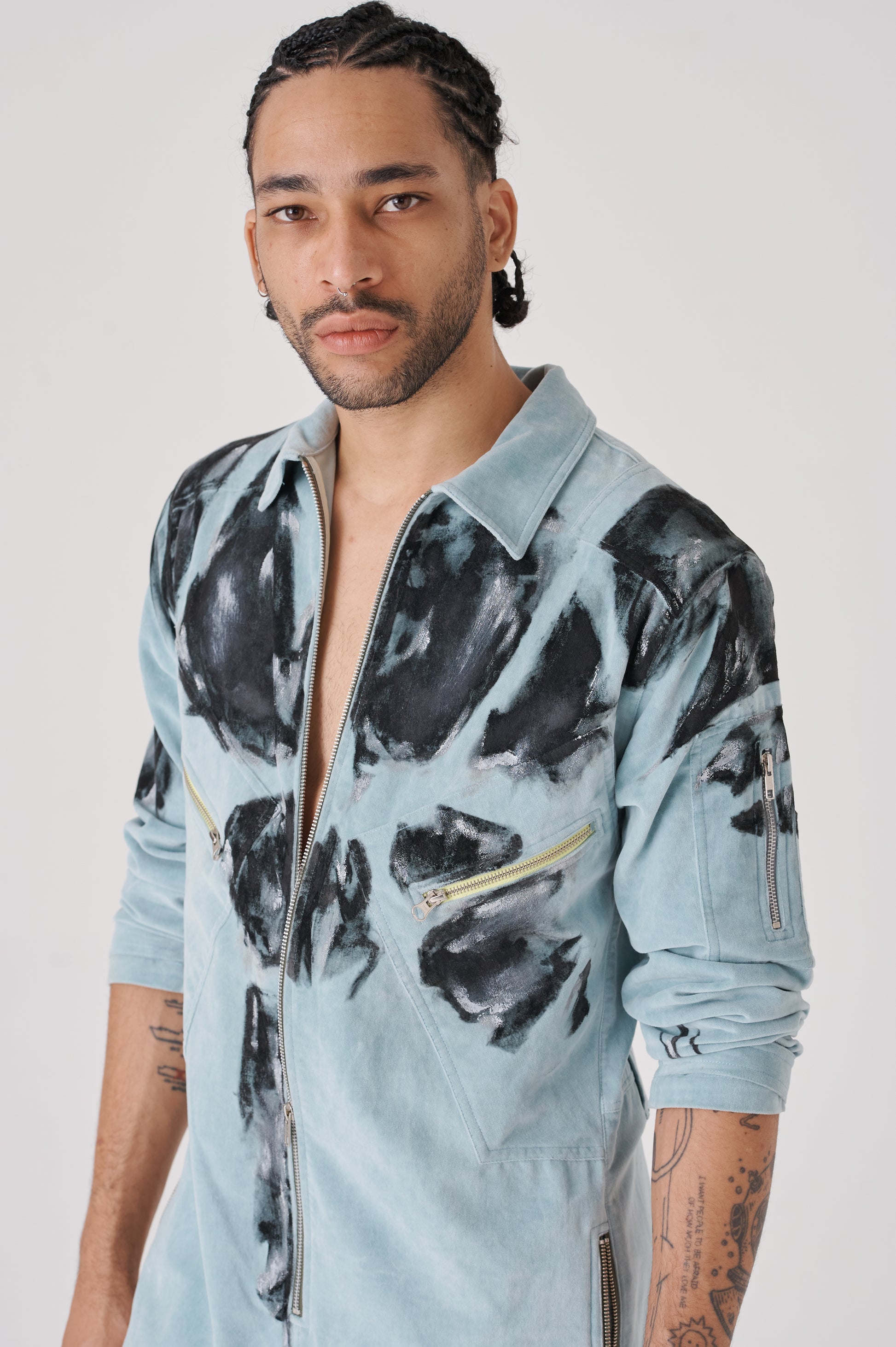 Overall made of velvet, 100% polyester. It has a contrasting front zip fastening, two on the front, a pocket on the left sleeve, and pockets on both sides at hip height. It has long sleeves and adjustable cuffs. The bottom part has a conventional length. The fit is regular and creates a silhouette that highlights the body shape.