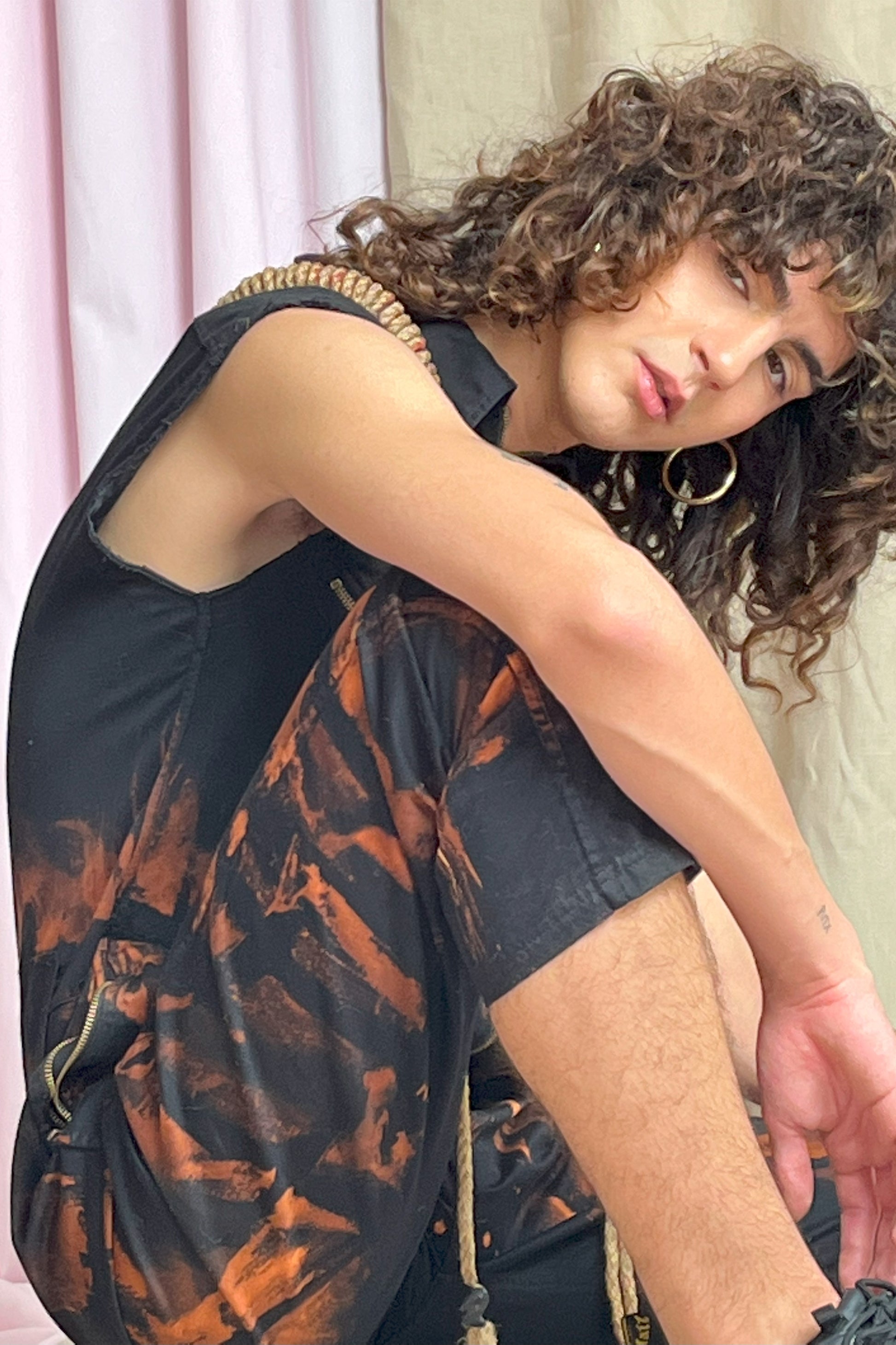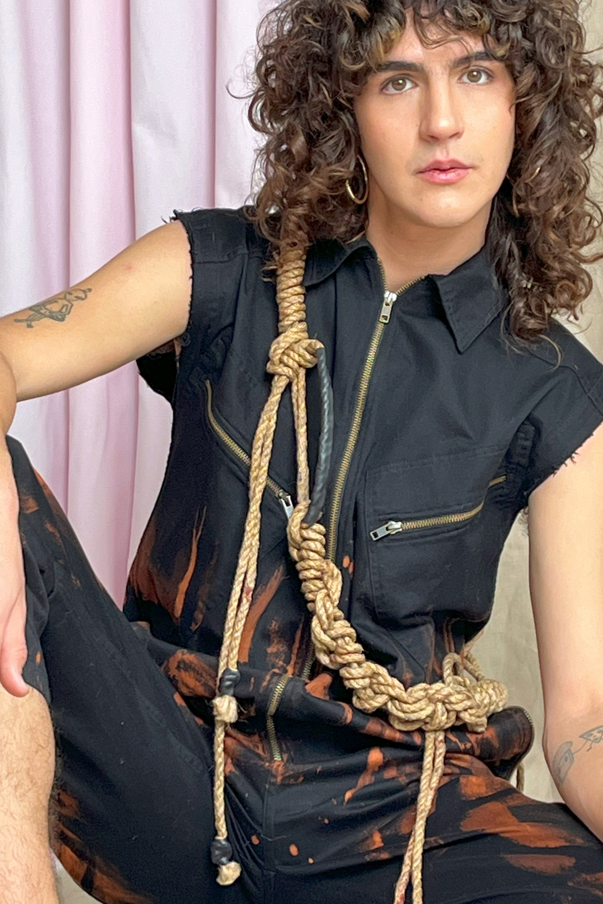His artistic practice explores restriction and suspension. To reveal what a body can do, he binds it; to showcase the potential of abstract painting, he reduces it to its bare minimum. His work investigates bodies subjected to the working device, queer eroticism, and identity shaped by politicized bodies.