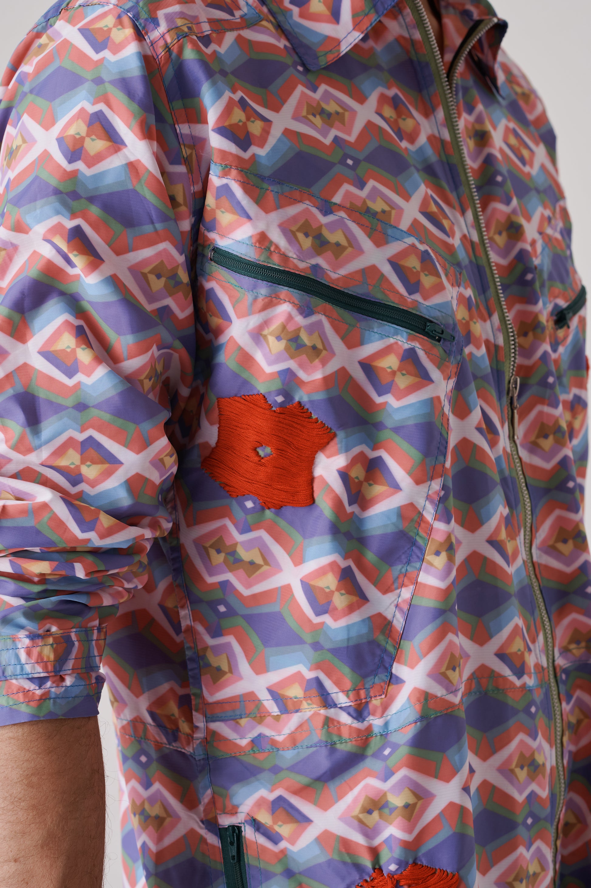 Her work spans painting, embroidery, patchwork, and installations. Driven by her passion for architecture and education, she explores polyphonic geometries and unexpected forms that offer a fresh perspective on the surrounding environment, as if unveiling the hidden laws within urban landscapes.