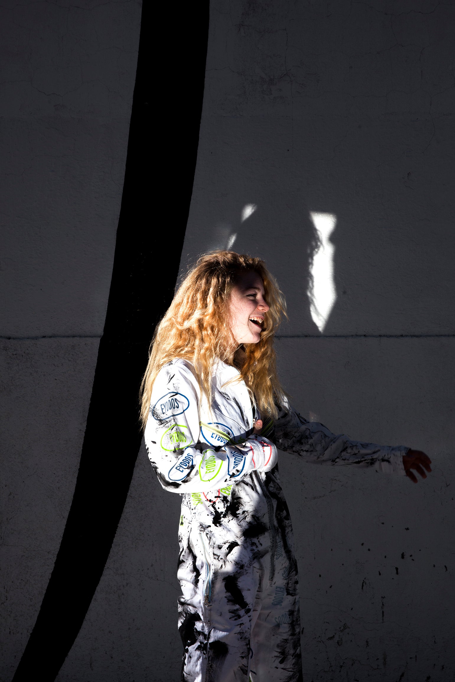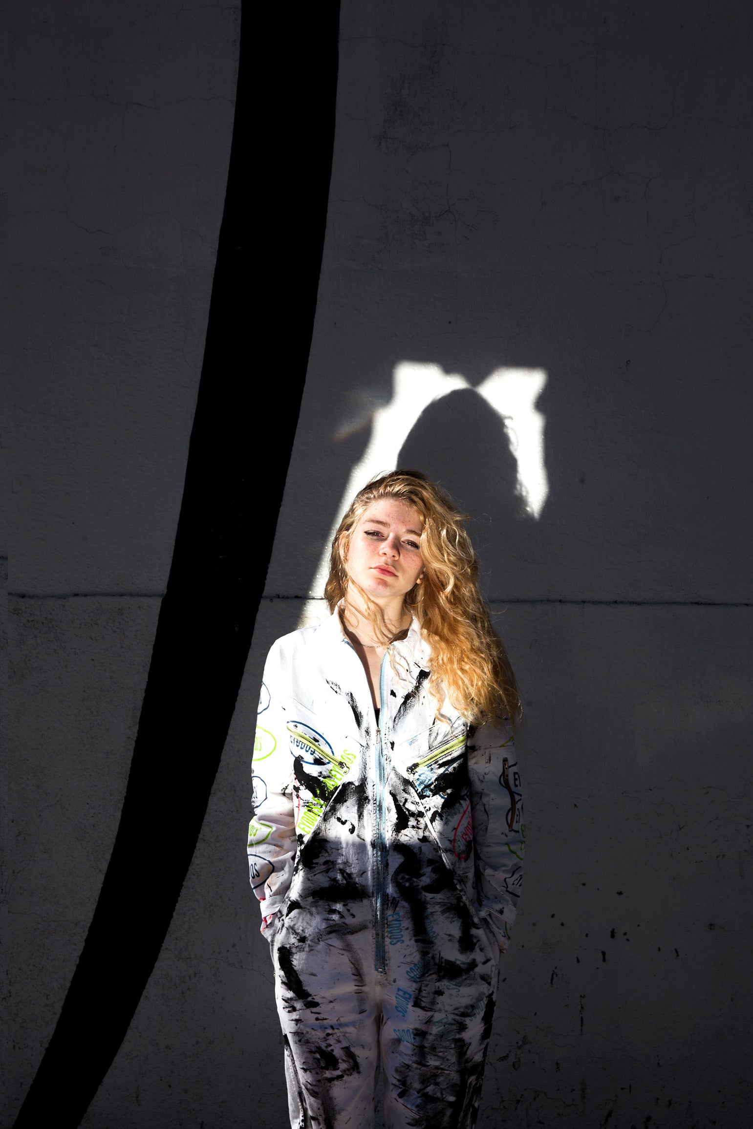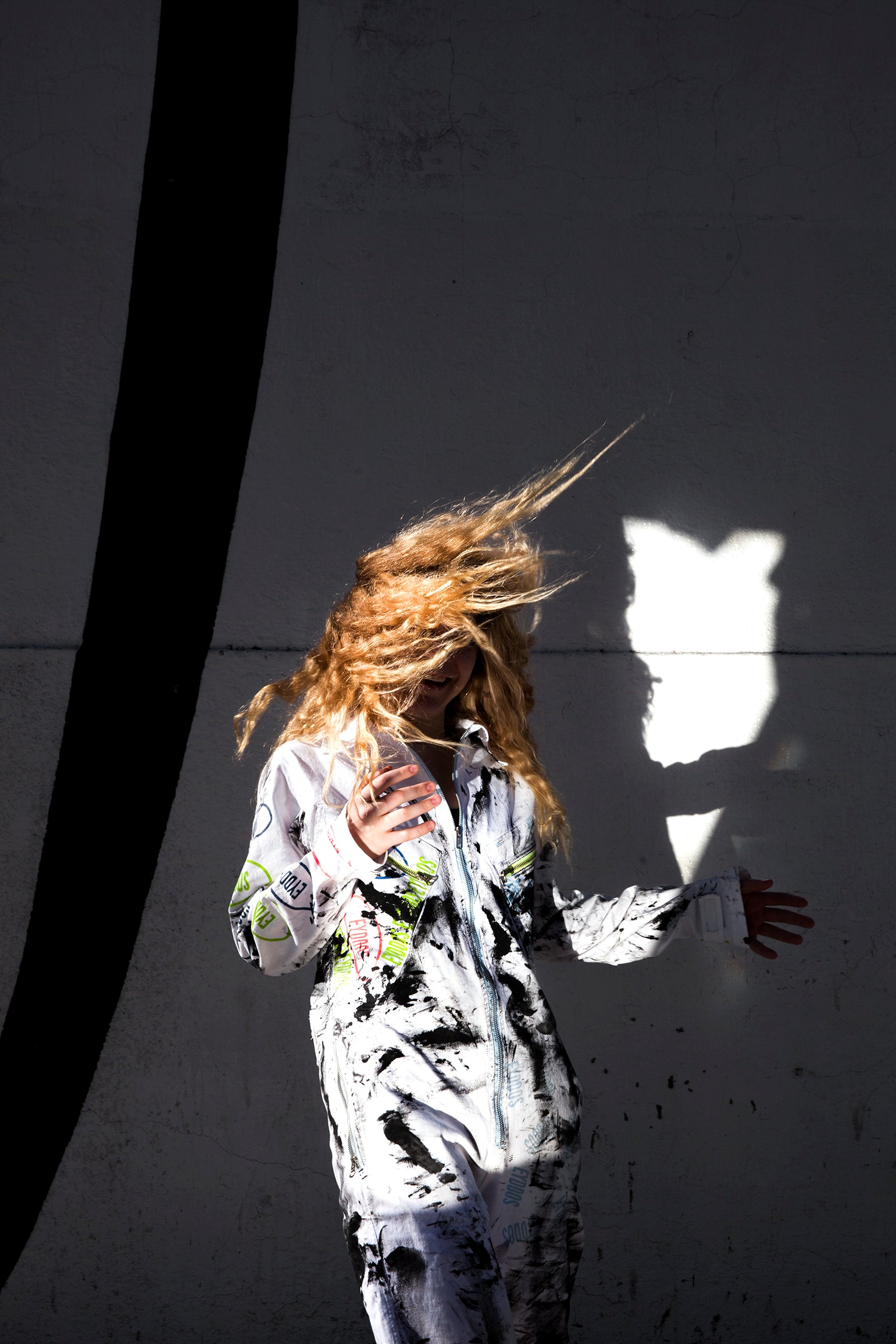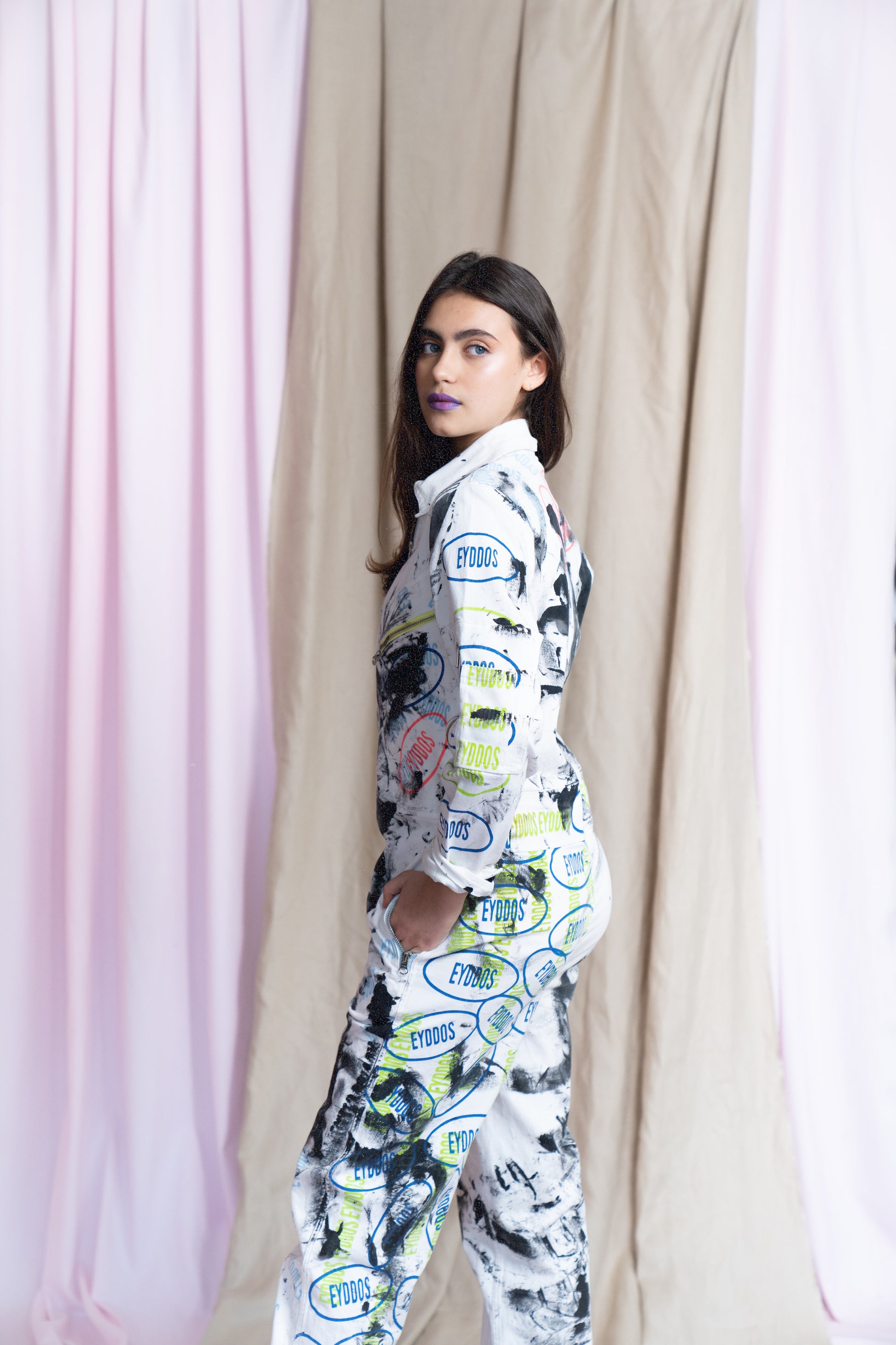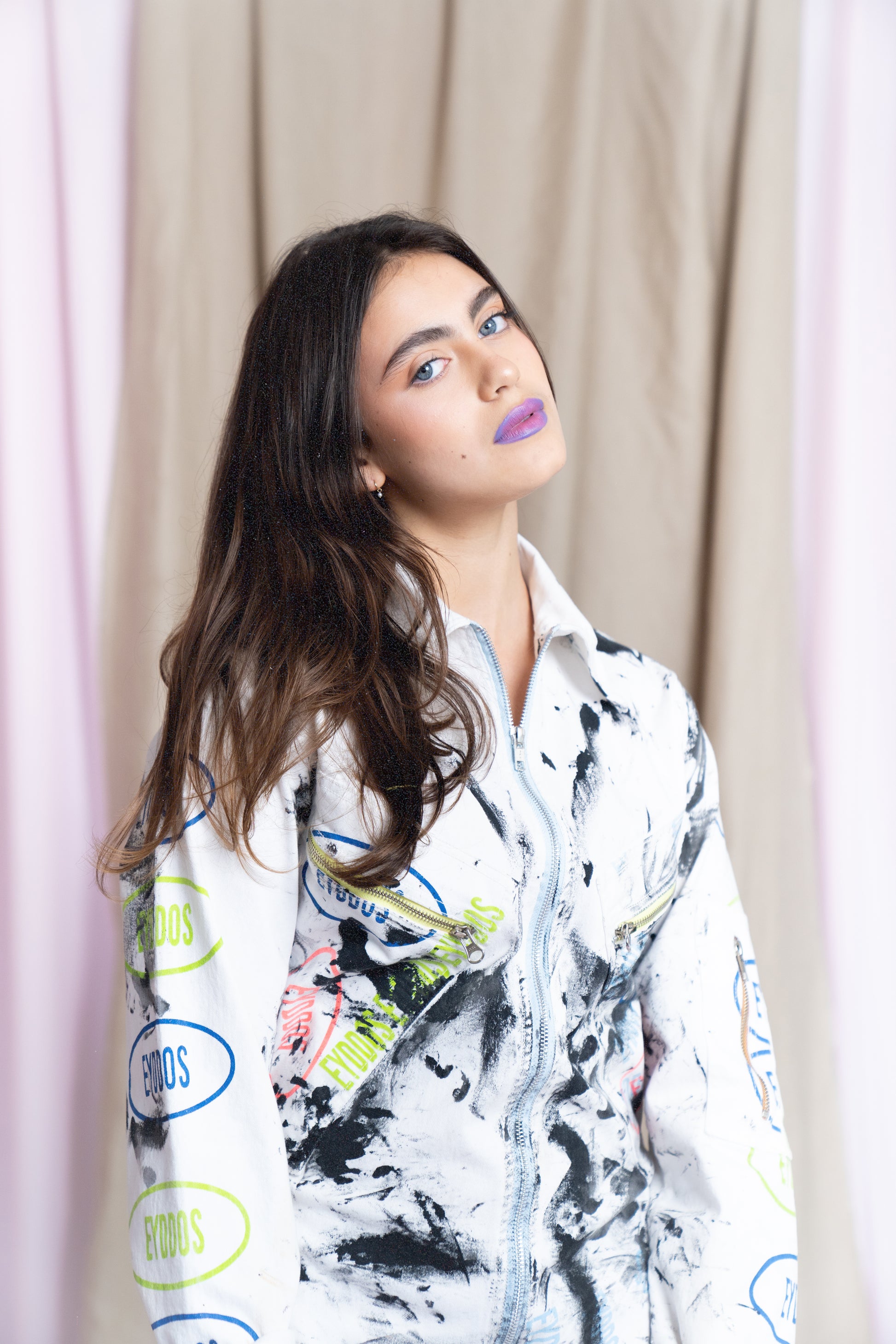 Overall made of canvas, 100% cotton. It has a contrasting front zip fastening, two on the front, a pocket on the left sleeve, and pockets on both sides at hip height. It has long sleeves and adjustable cuffs. The bottom part has a conventional length. The fit is regular and creates a silhouette that highlights the body shape.