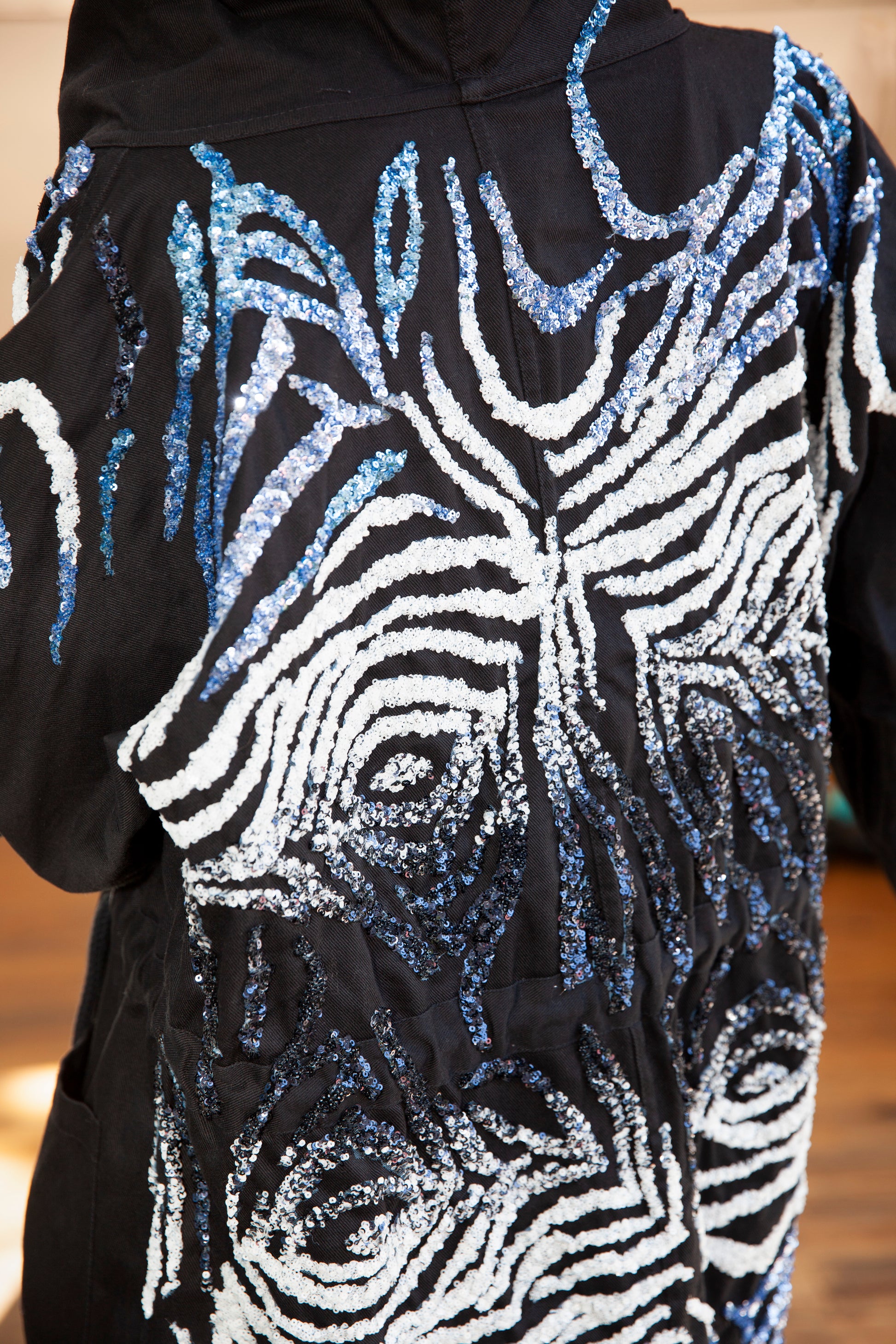 Coat made of black canvas 100%cotton, at inner have italian linen 100%linen. It haves two pockets on front, at low hips. The fit is oversize providing comfort in use.