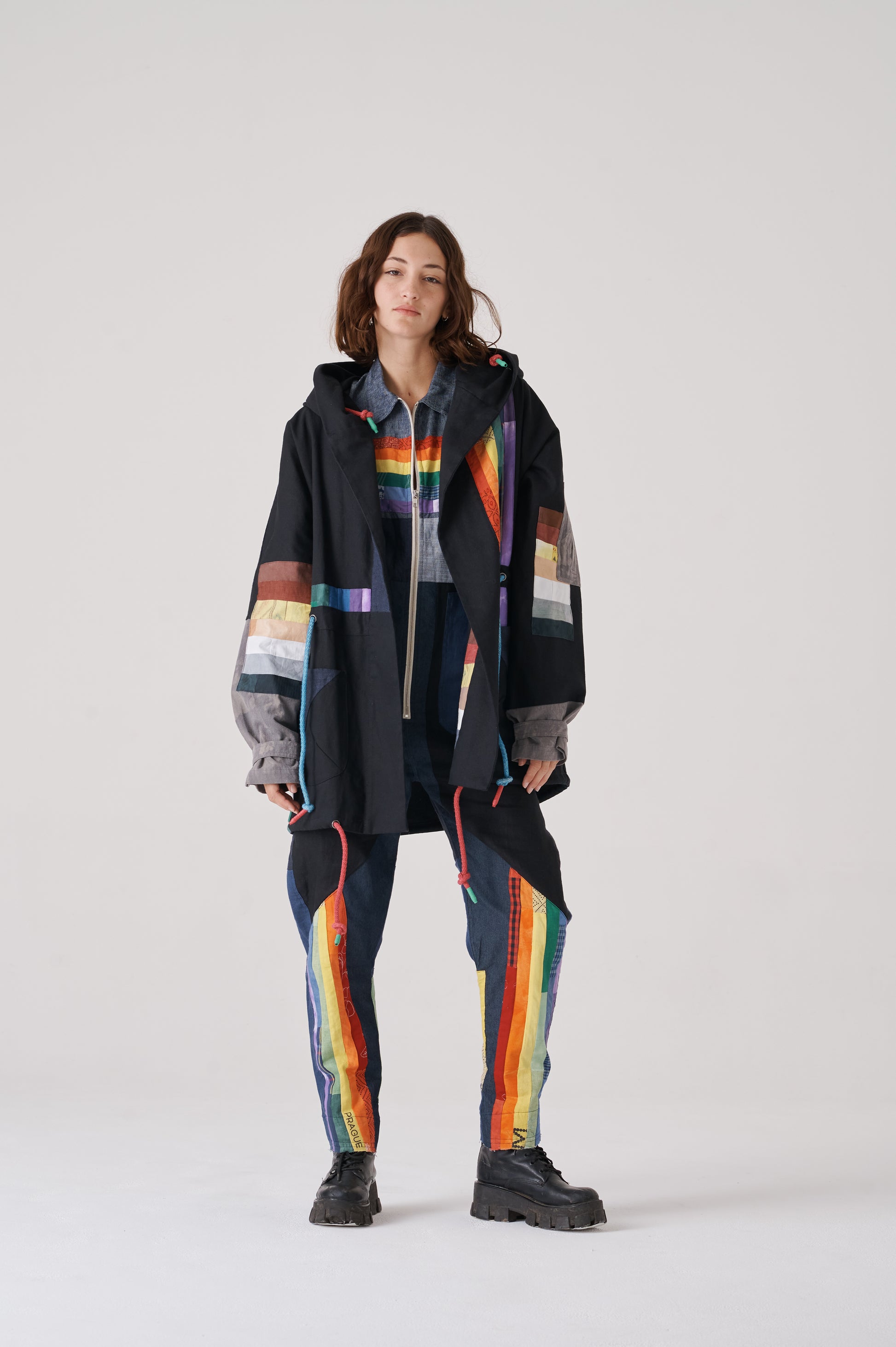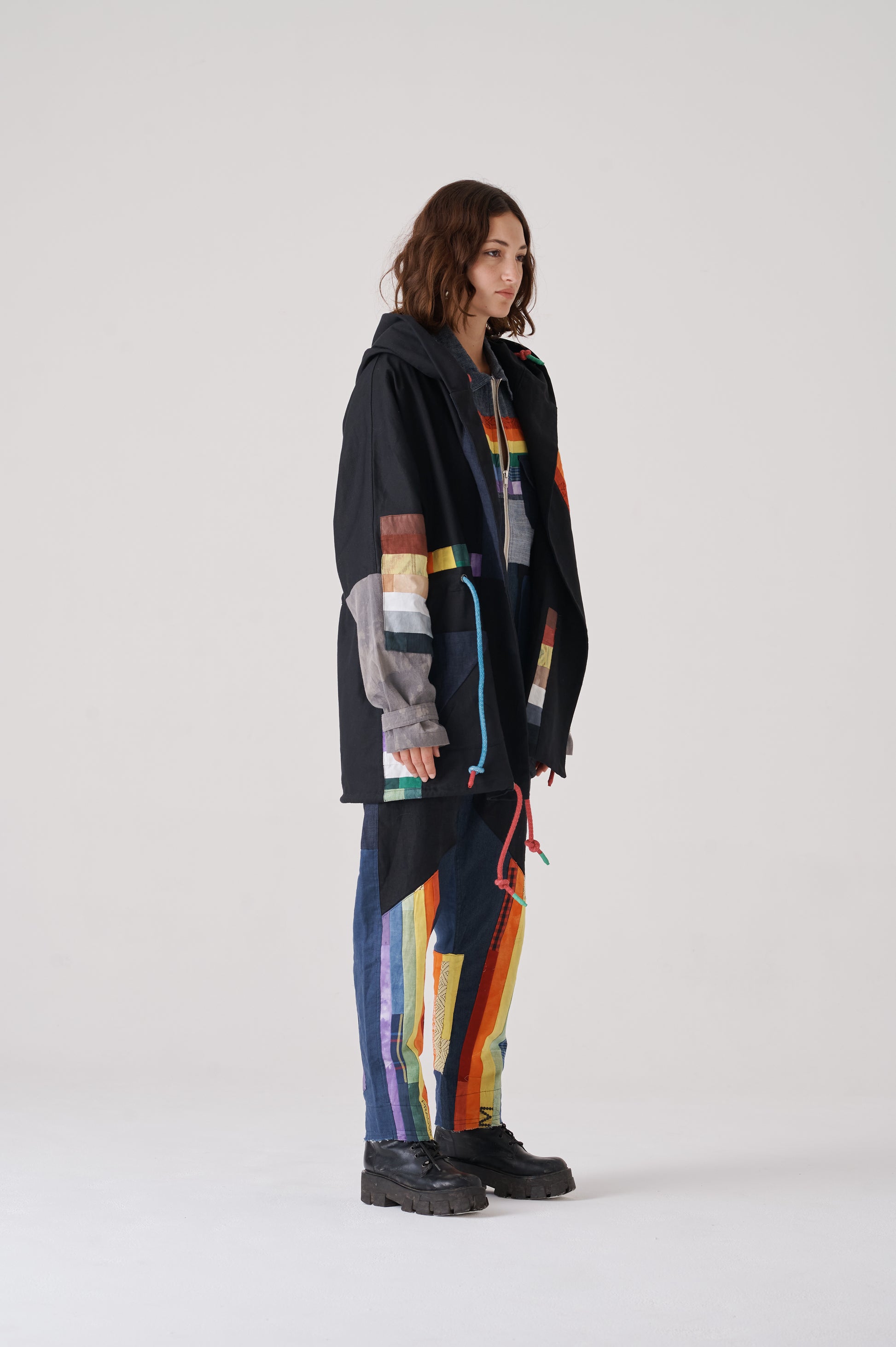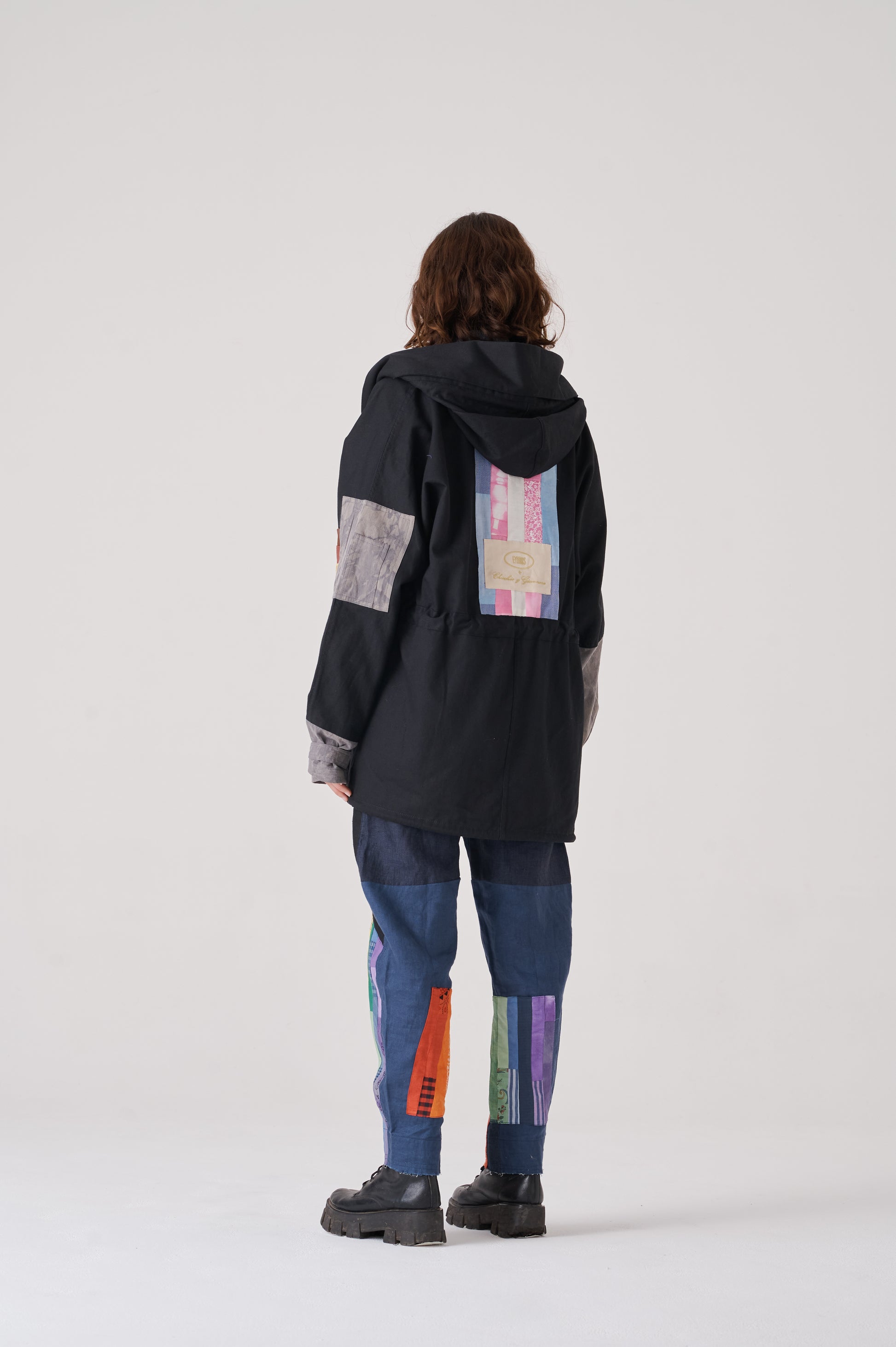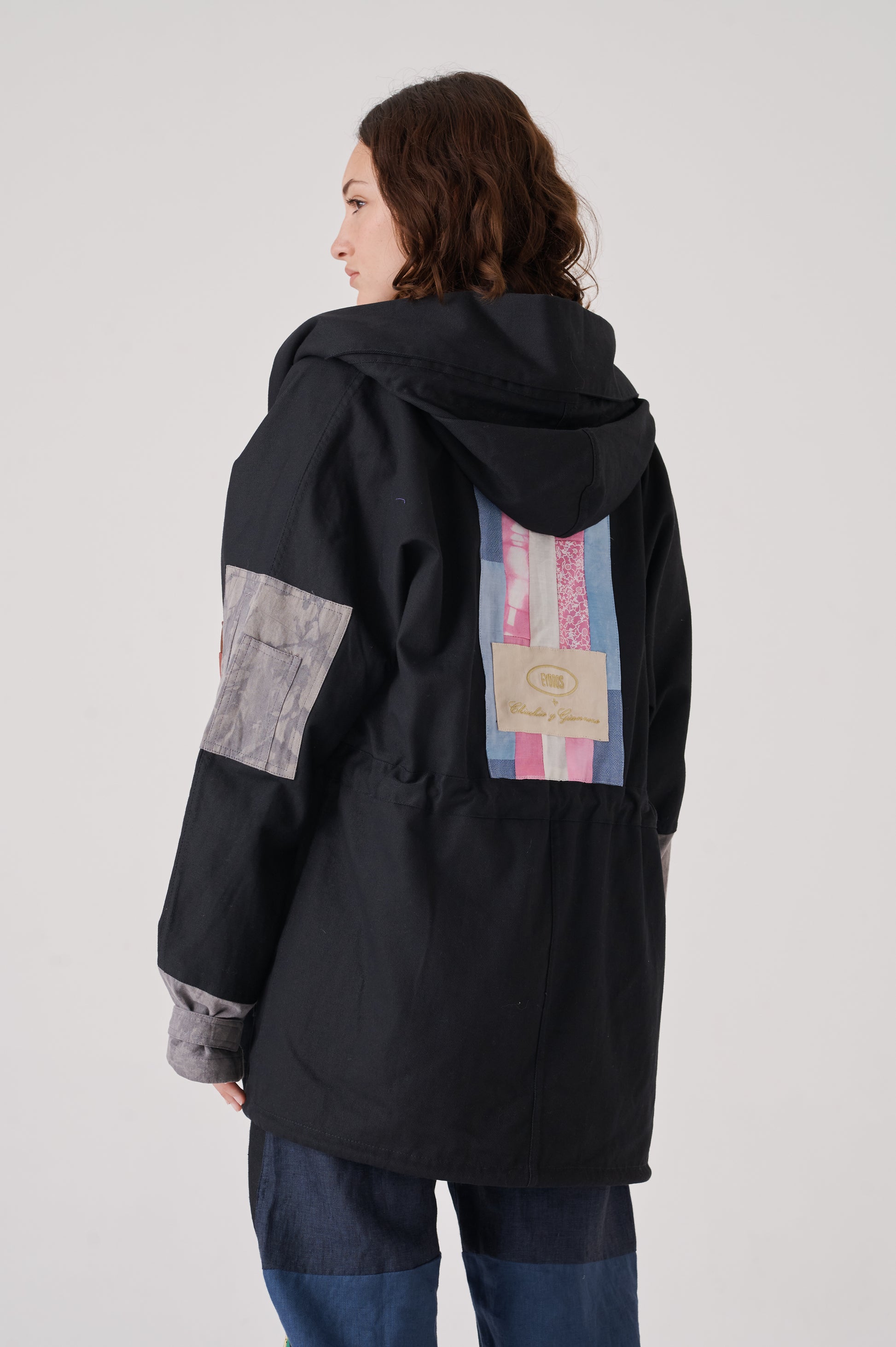 Coat made of canvas 100% cotton, with a variety patch of fabrics. It features two pockets on the lower hips in the front. The fit is oversized, providing comfort during wear.