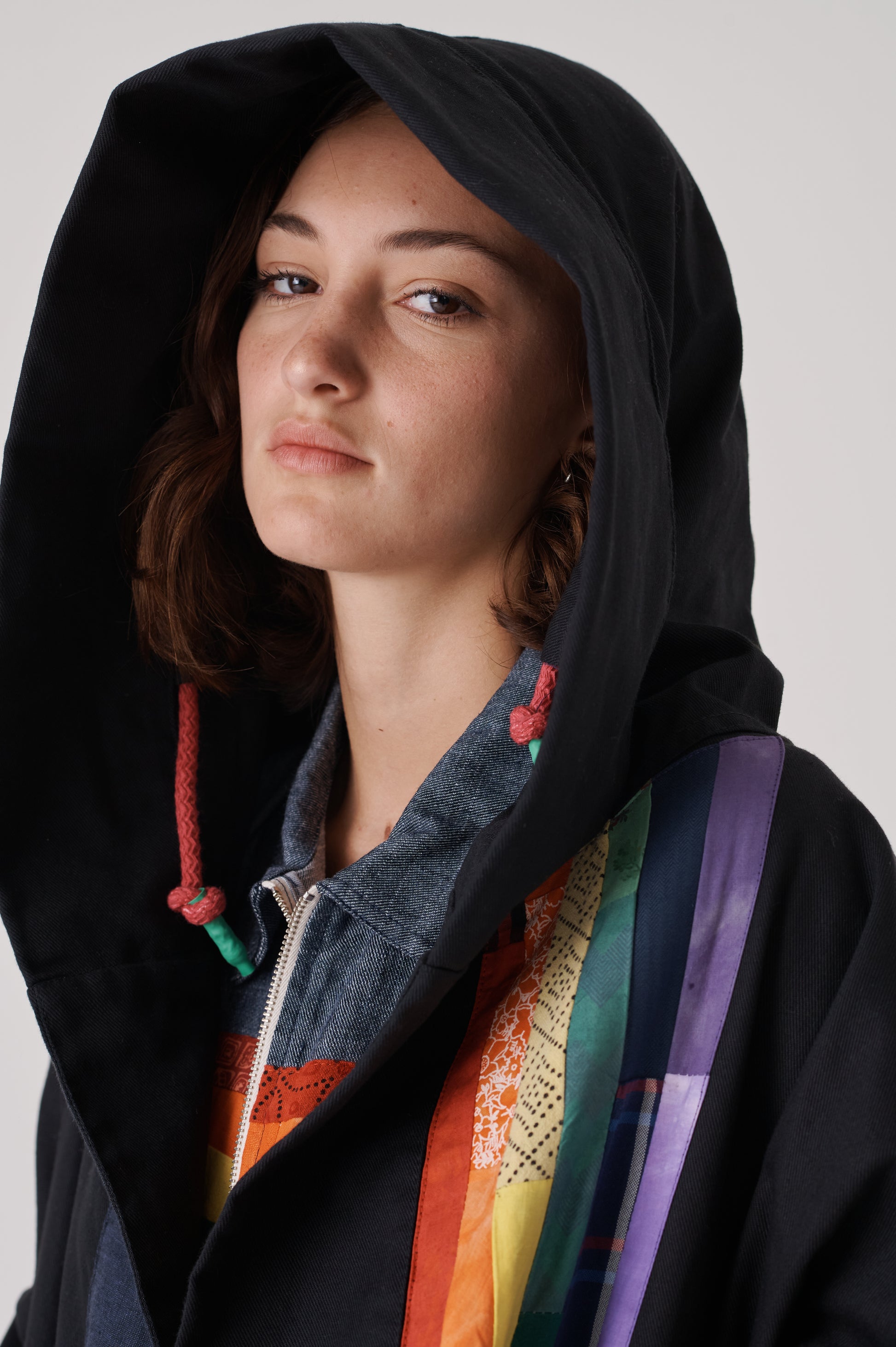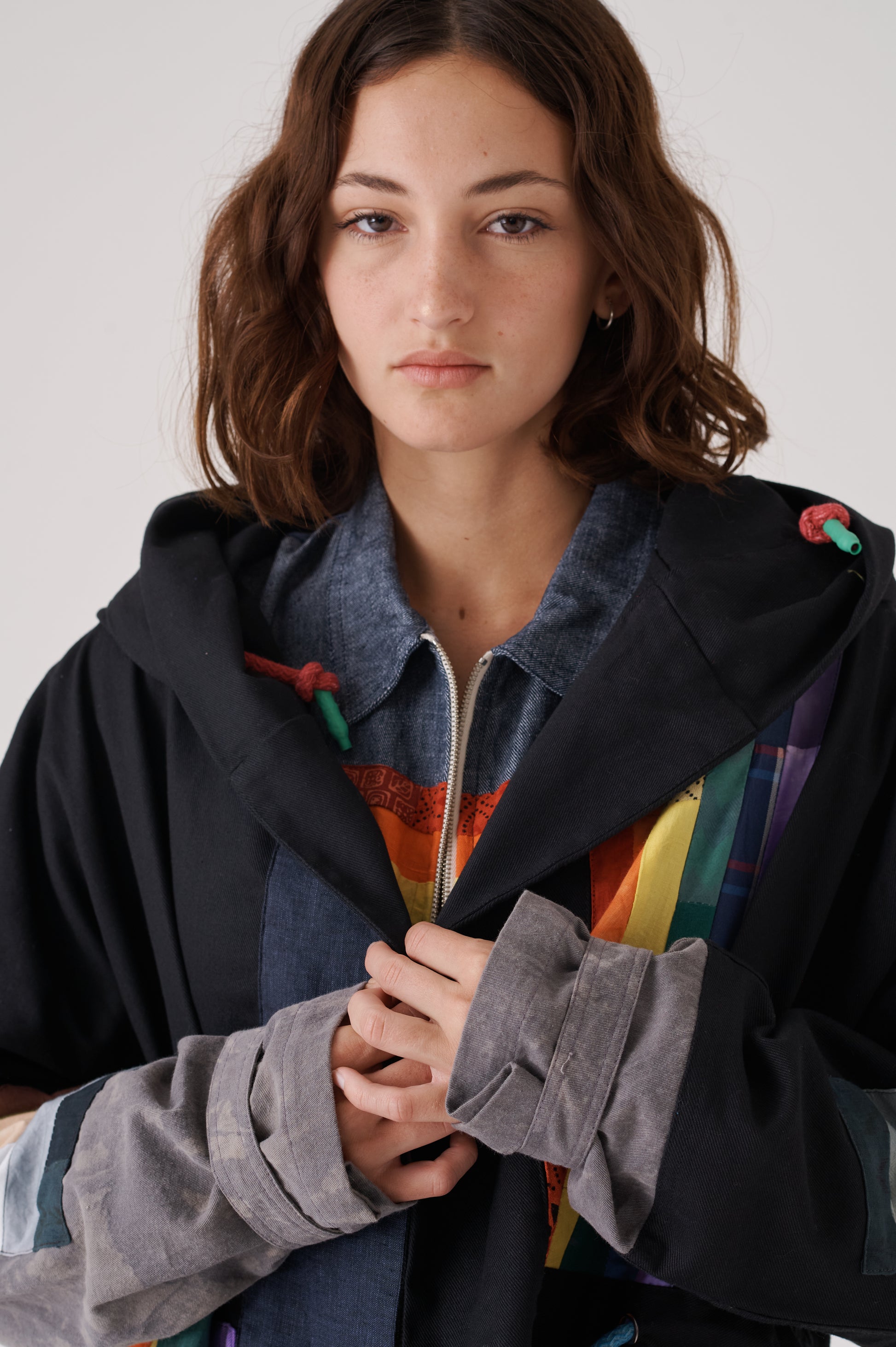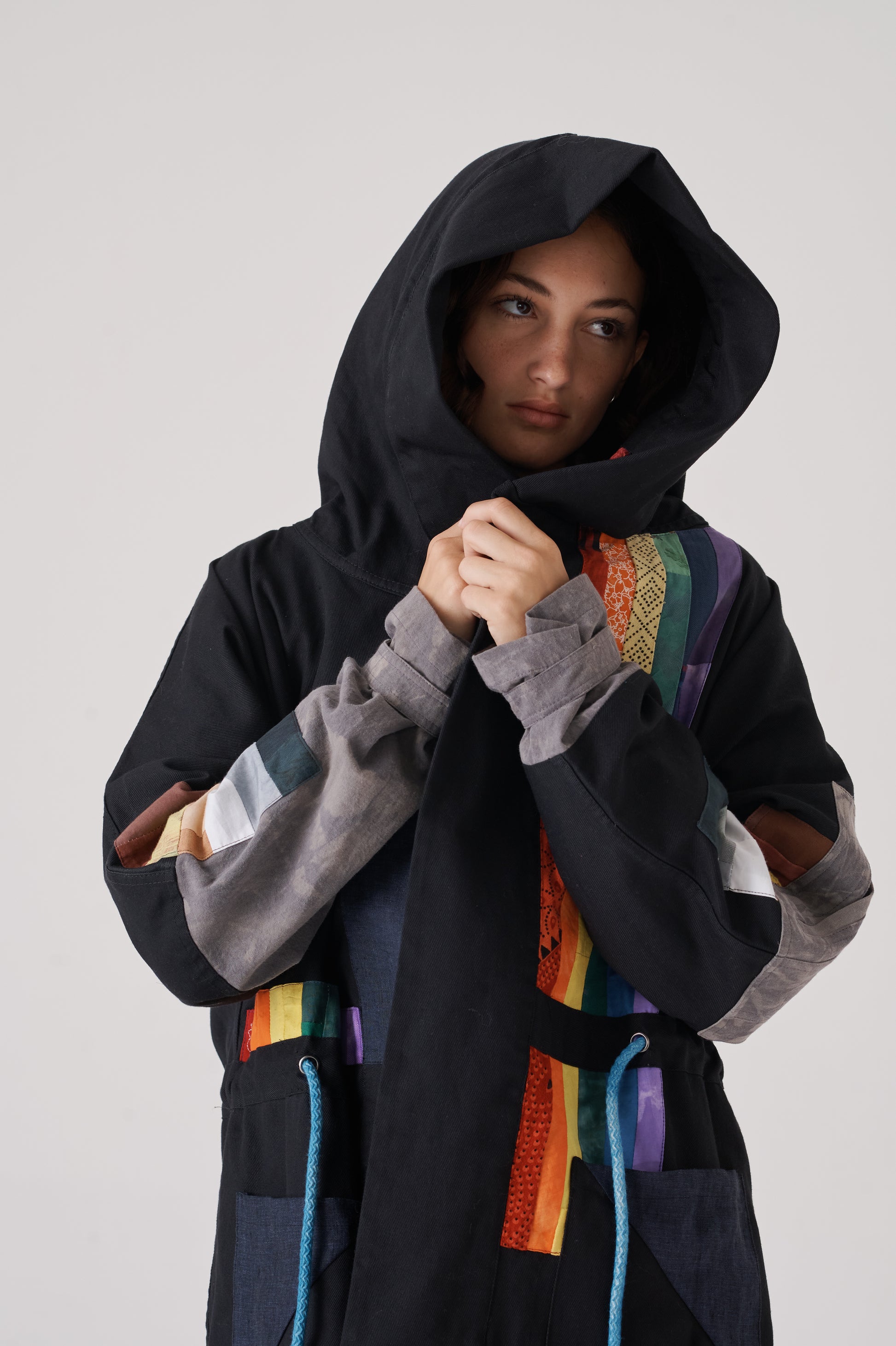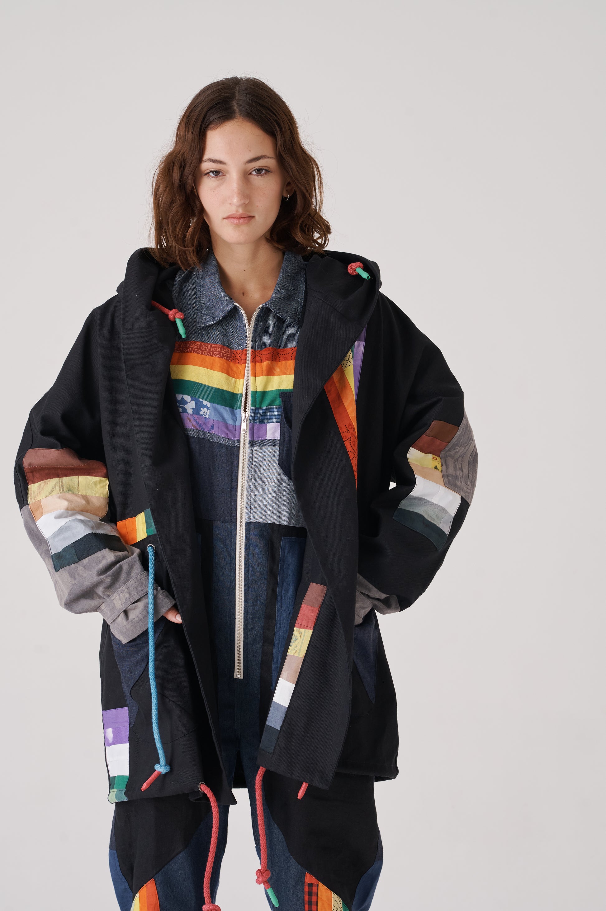Coat made of canvas 100% cotton, with a variety patch of fabrics. It features two pockets on the lower hips in the front. The fit is oversized, providing comfort during wear.