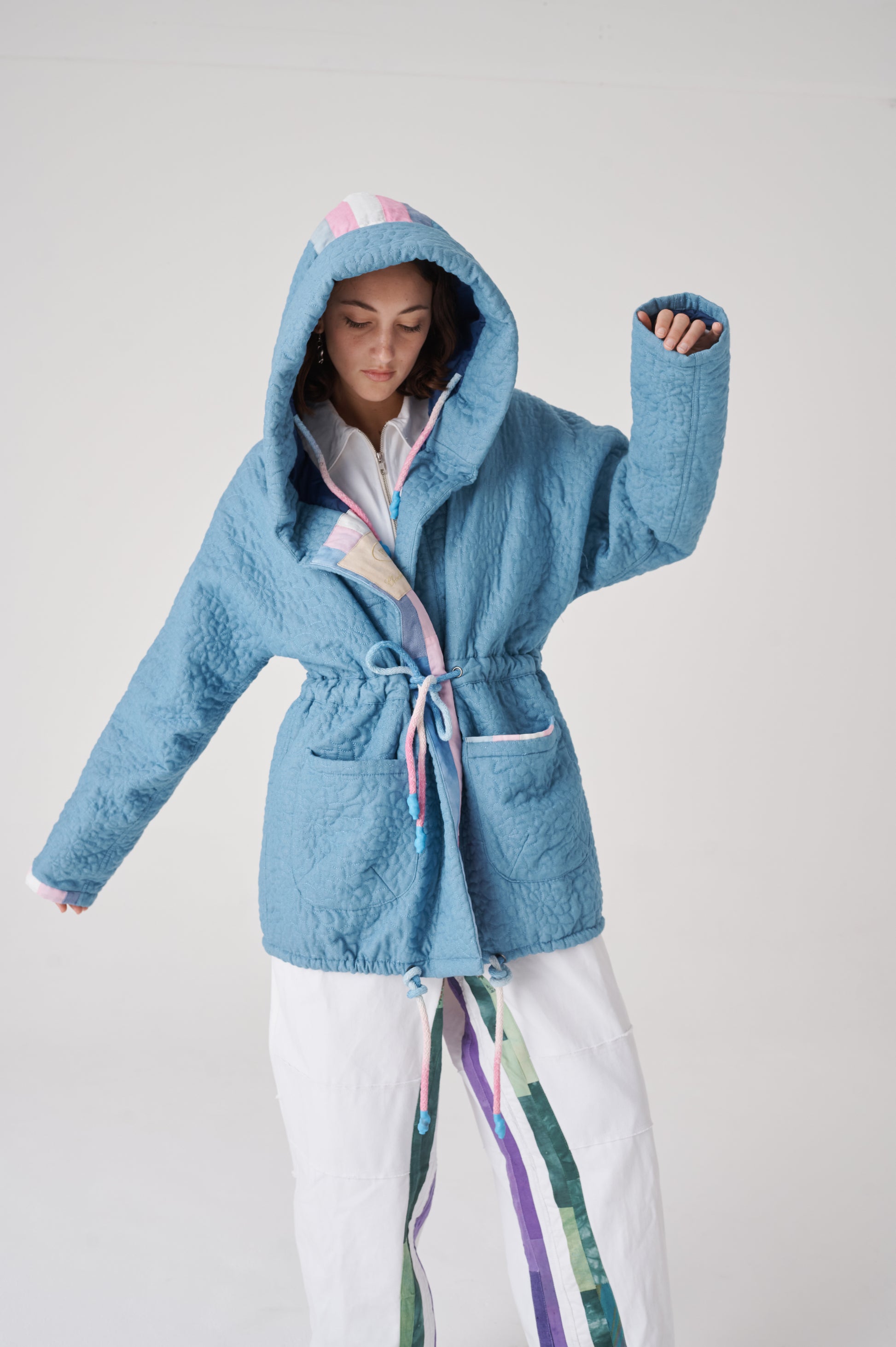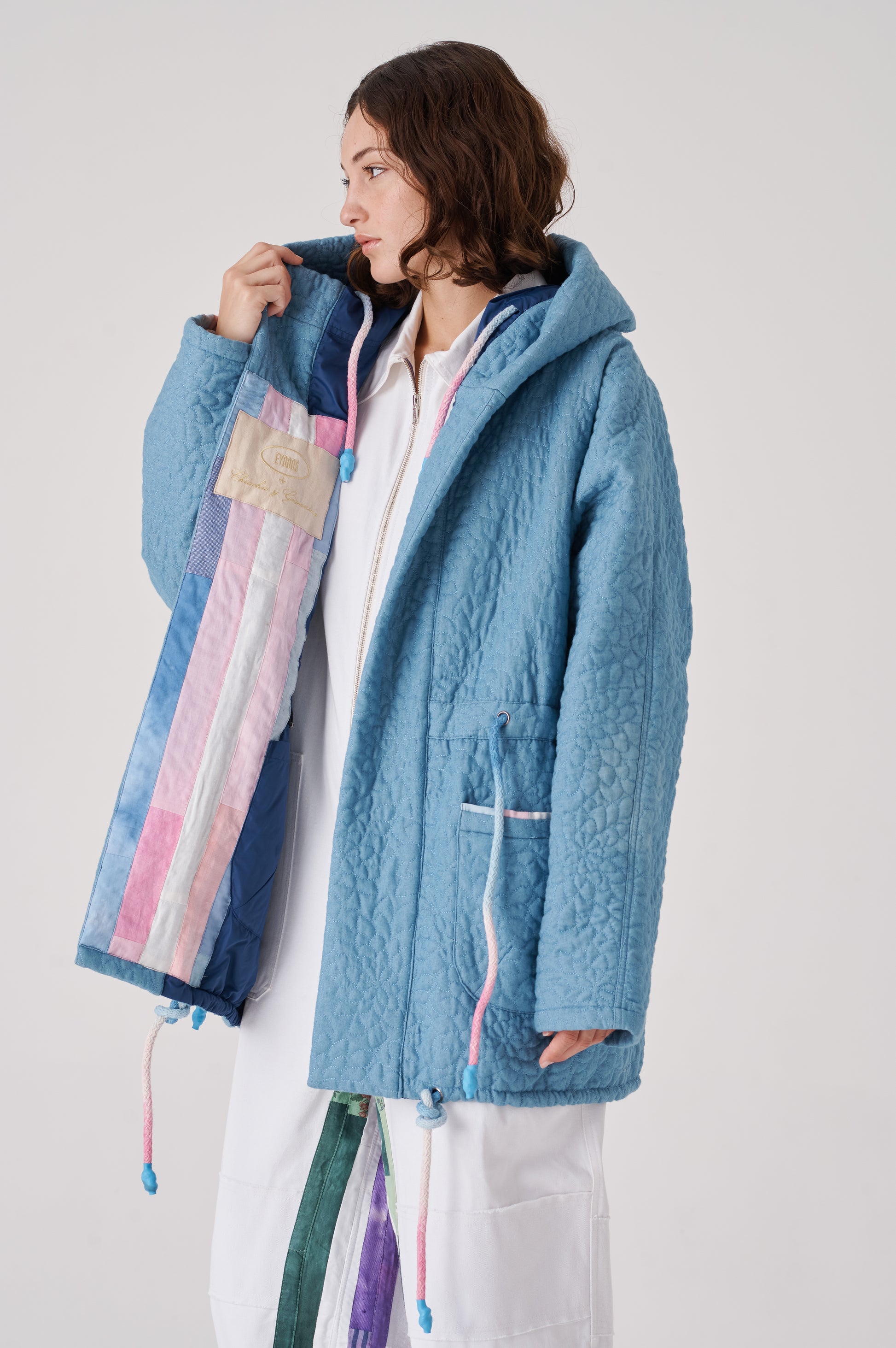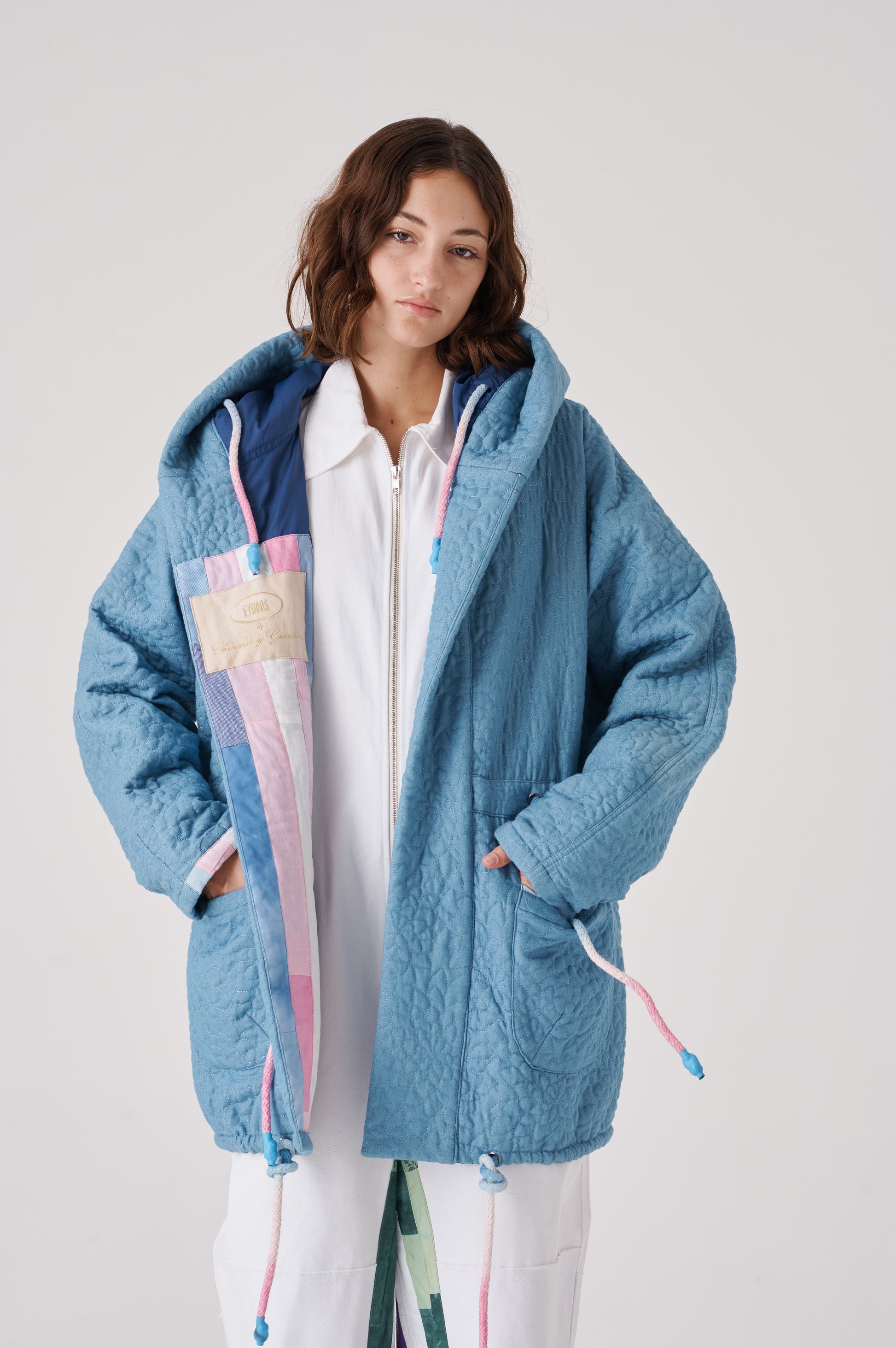 Coat made of 100% cotton with a padded design and a coated 100% polyester inner lining. It has two pockets on the lower hips in the front. The fit is oversized, providing comfort during wear.